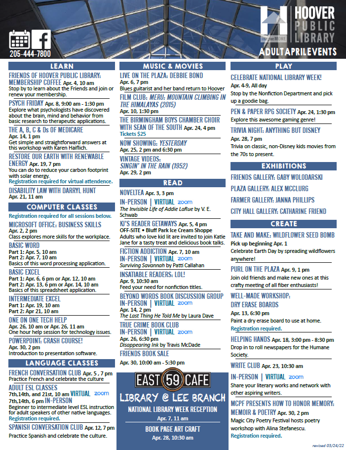 HPL Adult Events: April 2022