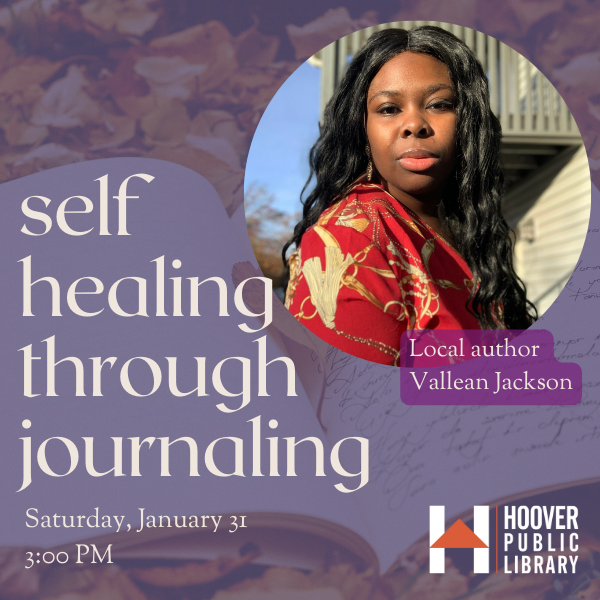| | Self Healing Through Journaling Sat., Jan. 31 • 3 PM | Learn skills in self-healing with author Vallean Jackson.